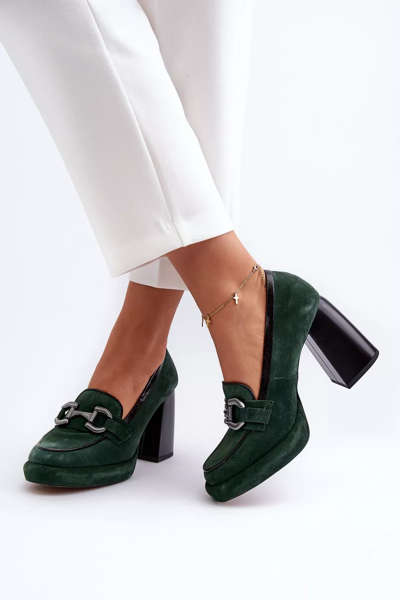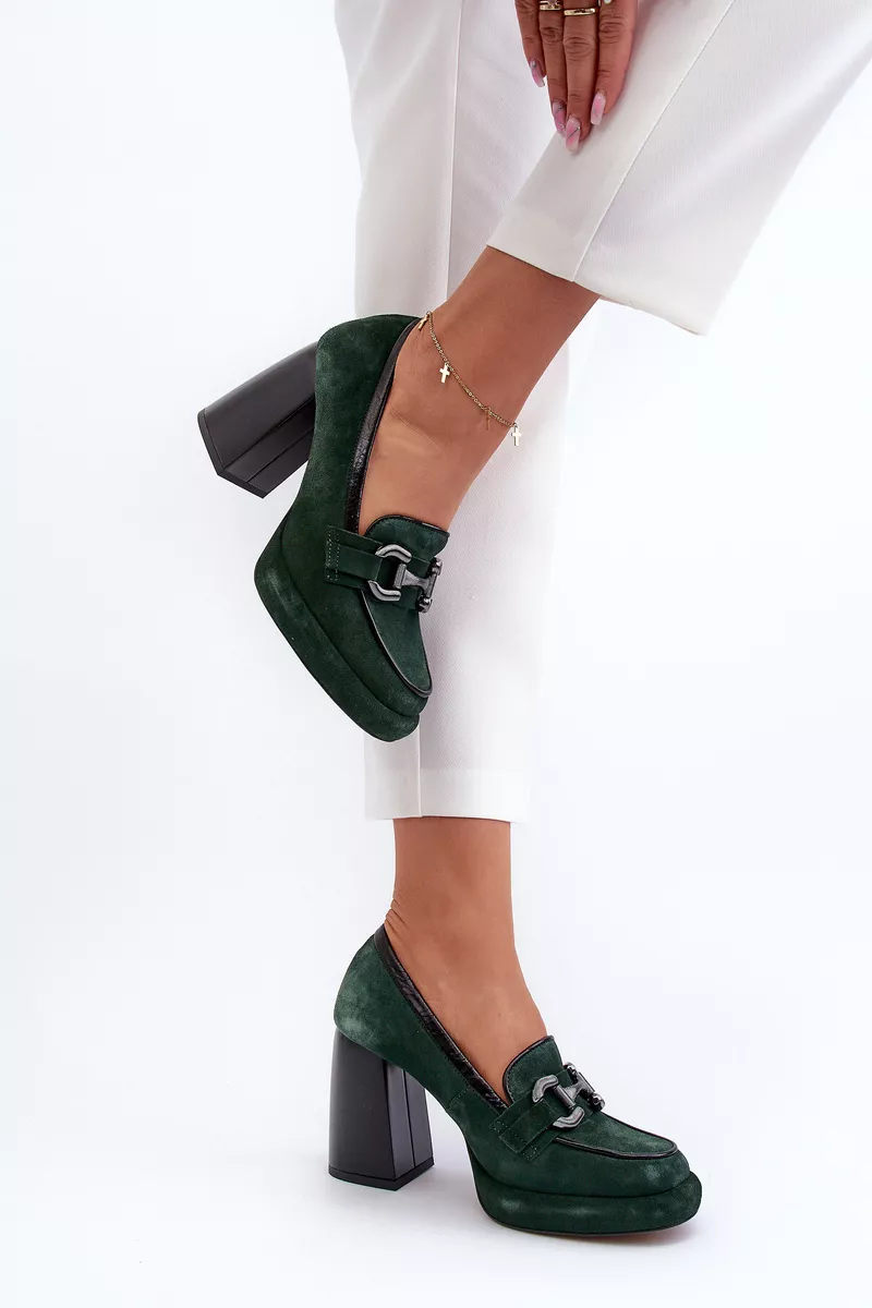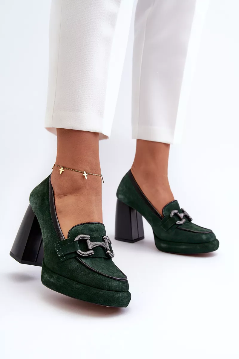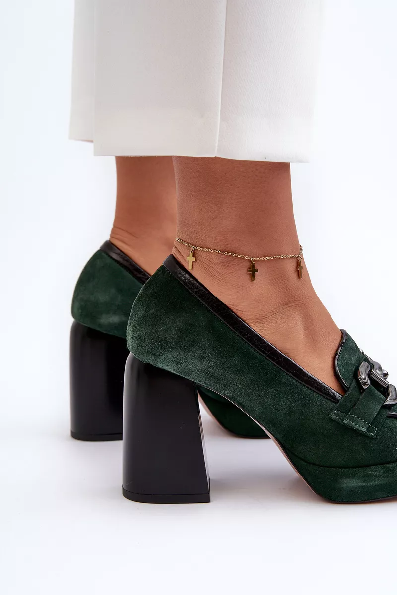 Sieviešu kurpes, izgatavotas no augstas kvalitātes dabīgās ādas. Ar platformu un biezu papēdi. Mīksta ādas zole nodrošina komfortu lietošanas laikā. Noapaļoti purngali. Pastiprināti purngali. Plastmasas rotājums priekšā. Izvēloties izmēru, lūdzu, izmantojiet izmēru tabulu.