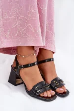 Šie elegantie sieviešu sandales, kas izgatavoti no dabīgās ādas, ir ideāla izvēle vasaras dienām. Stabilais blokveida papēdis nodrošina komfortu un ērtības visas dienas garumā. Regulējama siksna nodrošina perfektu pielāgošanos kājai. Dekoratīvā siksniņa priekšā piešķir tām unikālu šarmu. Ādas zole garantē papildu komfortu, padarot šīs sandales par ideālu izvēli elegantiem stiliem dažādām dzīves situācijām. Izvēloties savu izmēru, lūdzu, izmantojiet izmēru tabulu.