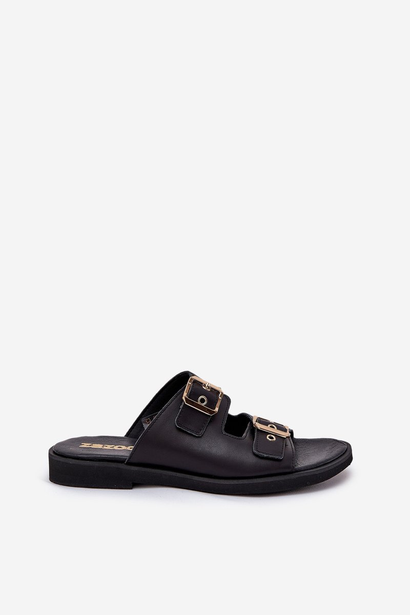 Ādas plakanās sandales ar sprādzēm Zazoo 3020 melnas