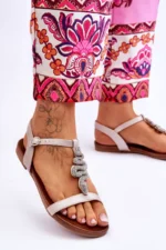 Sieviešu plakanās sandales ir izgatavotas no augstas kvalitātes ekoloģiskās ādas. Šim modelim ir dekoratīva čūska ar cirkona imitācijas kniedēm. Sandales tiek piestiprinātas ar regulējamu siksnu ar sprādzi. Ērtā zole ir ideāli piemērota ilgstošai lietošanai. Turklāt sandales ir aprīkotas ar neslīdošu zoli. Izvēloties izmēru, skatieties izmēru tabulu.