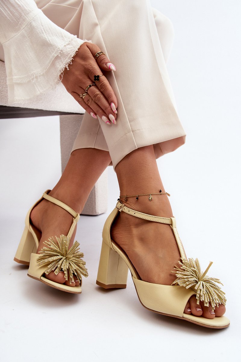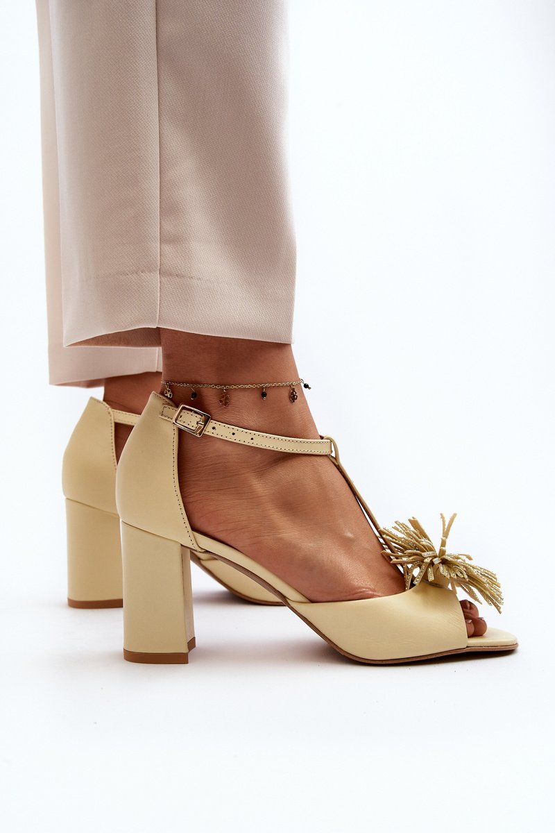 Sieviešu kurpes no dabīgās ādas. Ar papēdi kolonnas formā. Piesprādzē ar regulējamu siksnu ar sprādzi. Modelim ir pārklāts papēdis. Dekoratīvs elements priekšpusē. Ādas zole nodrošina komfortu lietošanas laikā. Šo modeli var kombinēt ar elegantiem bikšiem, svārkiem un kleitām. Izvēloties izmēru, skatieties izmēru tabulu.