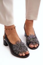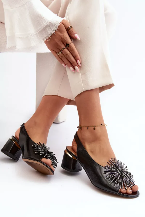 Elegantas sandales no dabīgās ādas. Ar blokveida papēdi. Dekoratīvs priekšdaļas dizains. Ādas zole nodrošina komfortu lietošanas laikā. Šis modelis lieliski piestāvēs kopā ar elegantiem bikšiem, svārkiem un kleitām. Tie noteikti ir jāiegādājas! Izvēloties izmēru, skatieties izmēru tabulu.