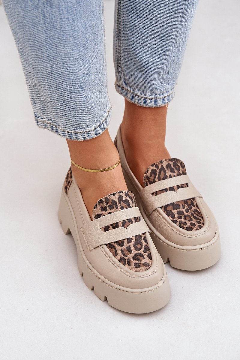 Sieviešu mokasīni no dabīgās ādas ir eleganta un stilīga izvēle jebkuram gadījumam. Tie ir aprīkoti ar platformu un stabilu, plakanu papēdi, kas nodrošina komfortu un stabilitāti visas dienas garumā. Noapaļotie purngali piešķir tiem smalku raksturu, bet dekoratīvā siksna ar izgriezumu priekšā piešķir modernu akcentu. Šie mokasīni apvieno eleganci ar komfortu, padarot tos par lielisku izvēli dažādiem apģērbiem. Izvēloties savu izmēru, lūdzu, izmantojiet izmēru tabulu.