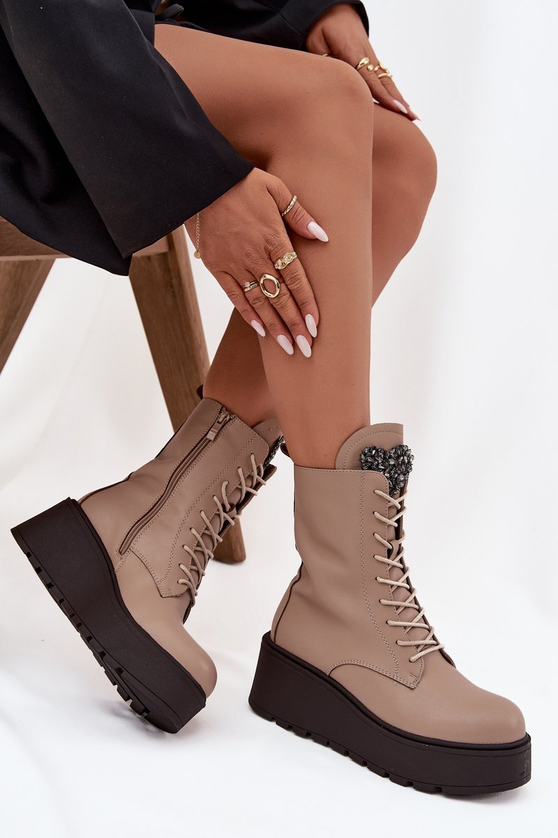 Jezzi sieviešu potītes zābaki ir paredzēti sievietēm, kas novērtē komfortu un modernu izskatu. Tie ir izgatavoti no dabīgās ādas un izceļas ar izturību un elegantu izskatu. Stabilais platformais papēdis vizuāli pagarina siluetu un nodrošina komfortu valkājot. Zābaki ir polsterēti, tādēļ tie ir ideāli piemēroti aukstām rudens un ziemas dienām. Modelim ir auklas un sānu rāvējslēdzējs, kas atvieglo to pielāgošanu un ātru uzvilkšanu. Īpaši uzmanību piesaista mirdzošie kristāli, kas izkārtoti sirds formā uz mēles – šis dekoratīvais elements piešķir apaviem unikālu šarmu un uzsver to sievišķīgo raksturu. Šie apavi ir ideāli piemēroti gan ikdienas, gan elegantiem stiliem, kļūstot par oriģinālu akcentu jūsu garderobē. Izmēra izvēlē iesakām vadīties pēc izmēru tabulas. Izmēra izvēlē vadieties pēc izmēru tabulas.