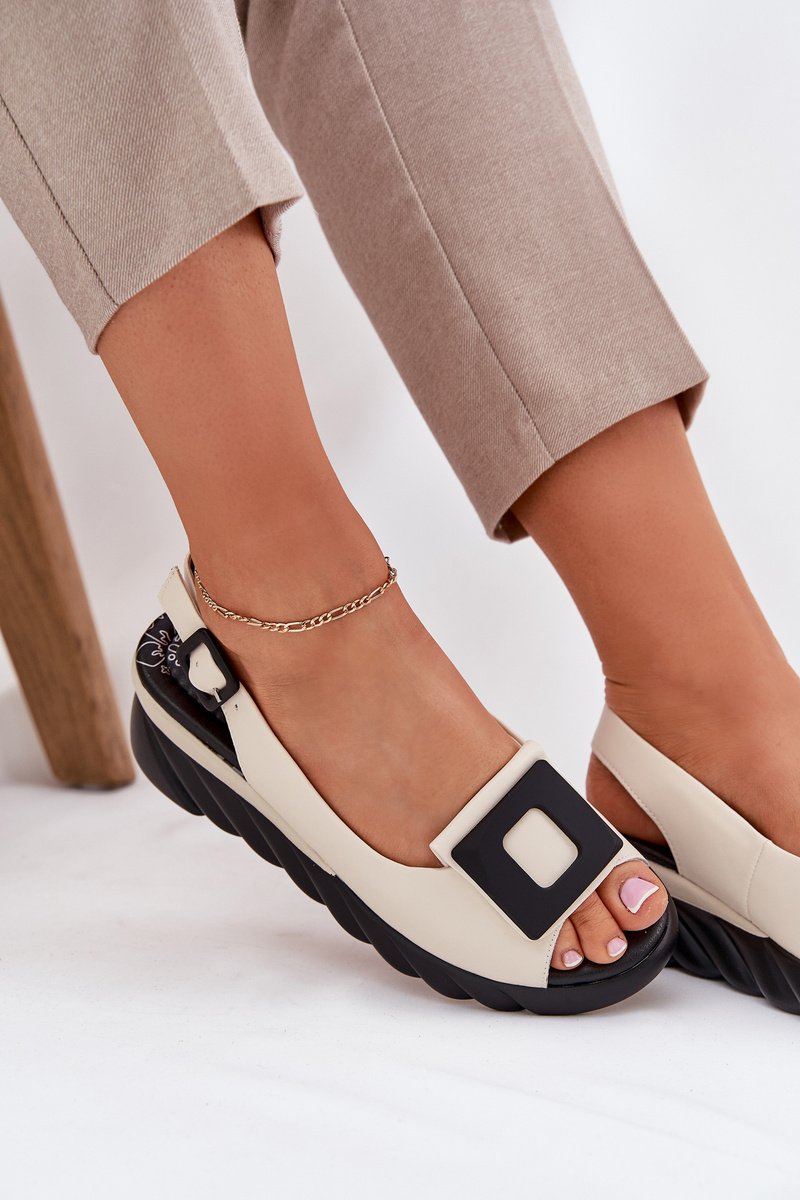 Šie sieviešu sandales, kas izgatavotas no dabīgās ādas un aprīkotas ar platformu, ir eleganta izvēle siltajām dienām. Modelis izceļas ar dekoratīvo elementu priekšpusē, kas piešķir tam unikālu raksturu. Piesprādzētas ar sprādzi un regulējamu siksnu, tās nodrošina perfektu pielāgošanos jūsu kājām. Turklāt mīkstā iekšējā zole nodrošina komfortu visas dienas garumā. Šie sandales ir ideāla izvēle vasaras stilam, apvienojot eleganci ar komfortu. Izvēloties savu izmēru, lūdzu, izmantojiet izmēru tabulu.