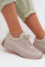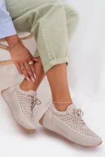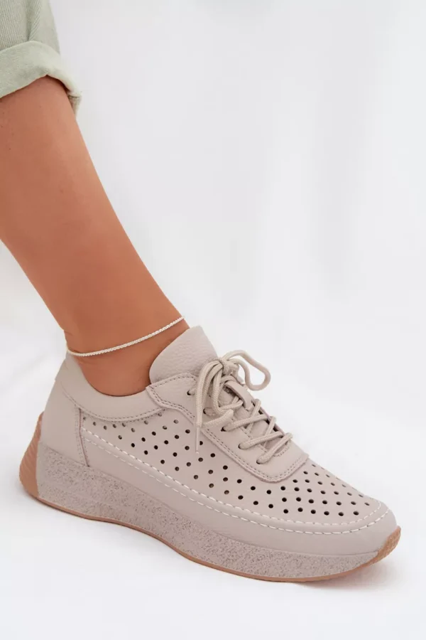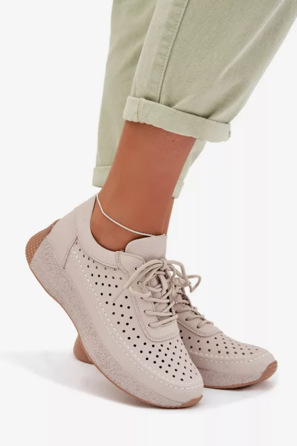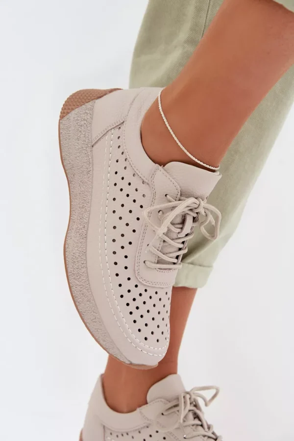 Sergio Leone sieviešu sporta kurpes, kas izgatavotas no dabīgās ādas, apvieno komfortu ar elegantu, ikdienas izskatu. Mīkstais materiāls nodrošina komfortu valkājot, bet vieglā konstrukcija padara šo modeli ideālu ikdienas lietošanai. Elastīgas auklas, kas imitē kurpju auklas, atvieglo apavu uzvilkšanu un nodrošina labu piegulumu. Smalkais, perforētais raksts piešķir vieglumu un smalkumu, uzsverot to sievišķīgo stilu. Šie ērta apavi ir ideāls papildinājums ikdienas apģērbam, apvienojot funkcionalitāti ar modernu izskatu. Izvēloties savu izmēru, lūdzu, izmantojiet izmēru tabulu.