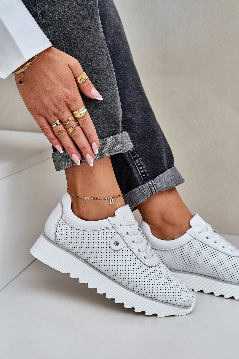 Šie sieviešu sporta apavi no dabīgās ādas apvieno eleganci un komfortu. Uz platformas ar smalku spīdumu tie piešķir mirdzumu jebkuram stilam. Viegls un ērts, tie nodrošina komfortu visas dienas garumā. Ādas virsa nodrošina atbilstošu amortizāciju un komfortu. Šie apavi ir lieliska izvēle ikdienas valkāšanai, apvienojot modernu izskatu ar funkcionalitāti. Izvēloties savu izmēru, lūdzu, izmantojiet izmēru tabulu.