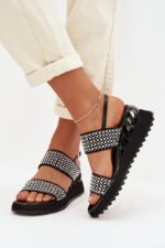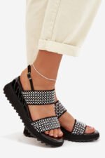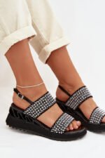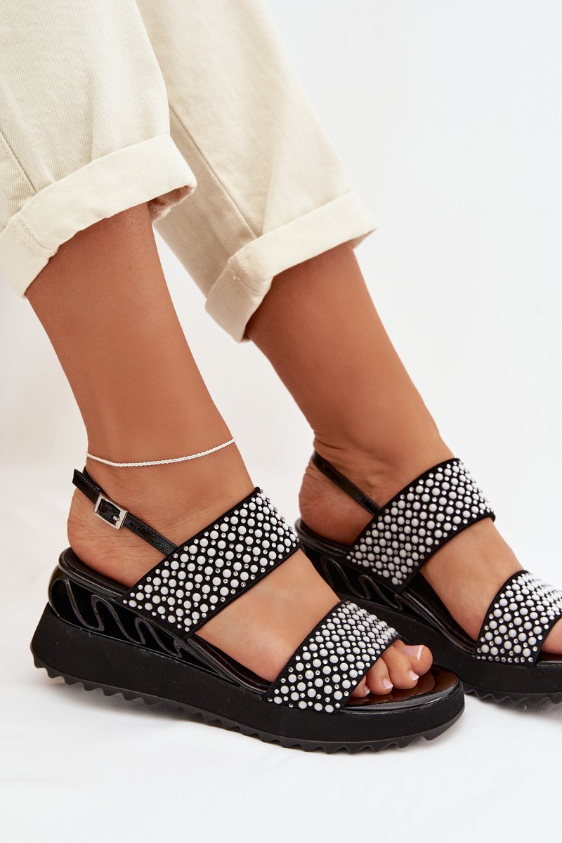 Sieviešu sandales, kas izgatavotas no dabīga zamšādas un ādas kombinācijas, ir stilīga izvēle siltajiem dienām. Rūpīgi izvēlēti materiāli nodrošina komfortu un estētisku apdari, uzsverot modeļa sievišķo raksturu. Apavi ir uzstādīti uz ērtas platformas, kas smalki saīsina siluetu un palielina staigāšanas komfortu. Sprādzes aizdare ļauj pielāgot apavu pie pēdas, nodrošinot stabilitāti valkāšanas laikā. Modelis ir rotāts ar cirkoniem un dekoratīviem bumbiņām, kas piešķir efektīgu spīdumu un izcilu stilu. Tas ir elegants variants, piemērots gan ikdienas lietošanai, gan īpašiem gadījumiem. Izvēloties izmēru, lūdzu, skatiet izmēru tabulu.