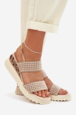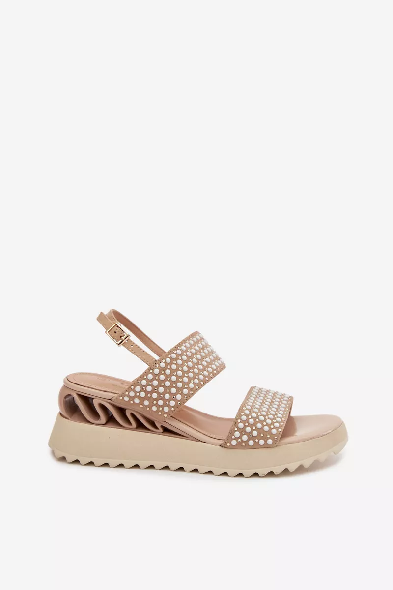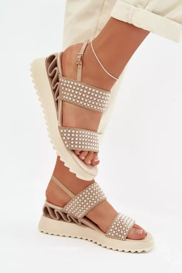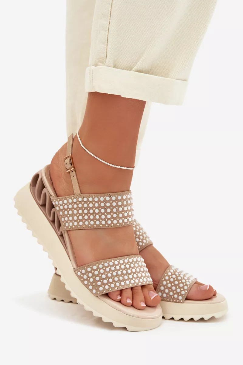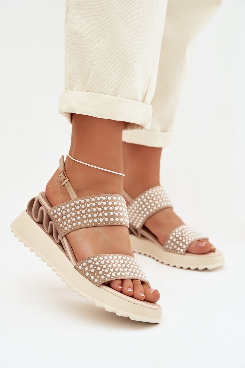 Sieviešu sandales, kas izgatavotas no dabīga zamšādas un ādas kombinācijas, ir stilīga izvēle siltajiem dienām. Rūpīgi izvēlēti materiāli nodrošina komfortu un estētisku apdari, uzsverot modeļa sievišķo raksturu. Apavi ir uzstādīti uz ērtas platformas, kas smalki saīsina siluetu un palielina staigāšanas komfortu. Sprādzes aizdare ļauj pielāgot apavu pie pēdas, nodrošinot stabilitāti valkāšanas laikā. Modelis ir rotāts ar cirkoniem un dekoratīviem bumbiņām, kas piešķir efektīgu spīdumu un izcilu stilu. Tas ir elegants variants, piemērots gan ikdienas lietošanai, gan īpašiem gadījumiem. Izvēloties izmēru, lūdzu, skatiet izmēru tabulu.