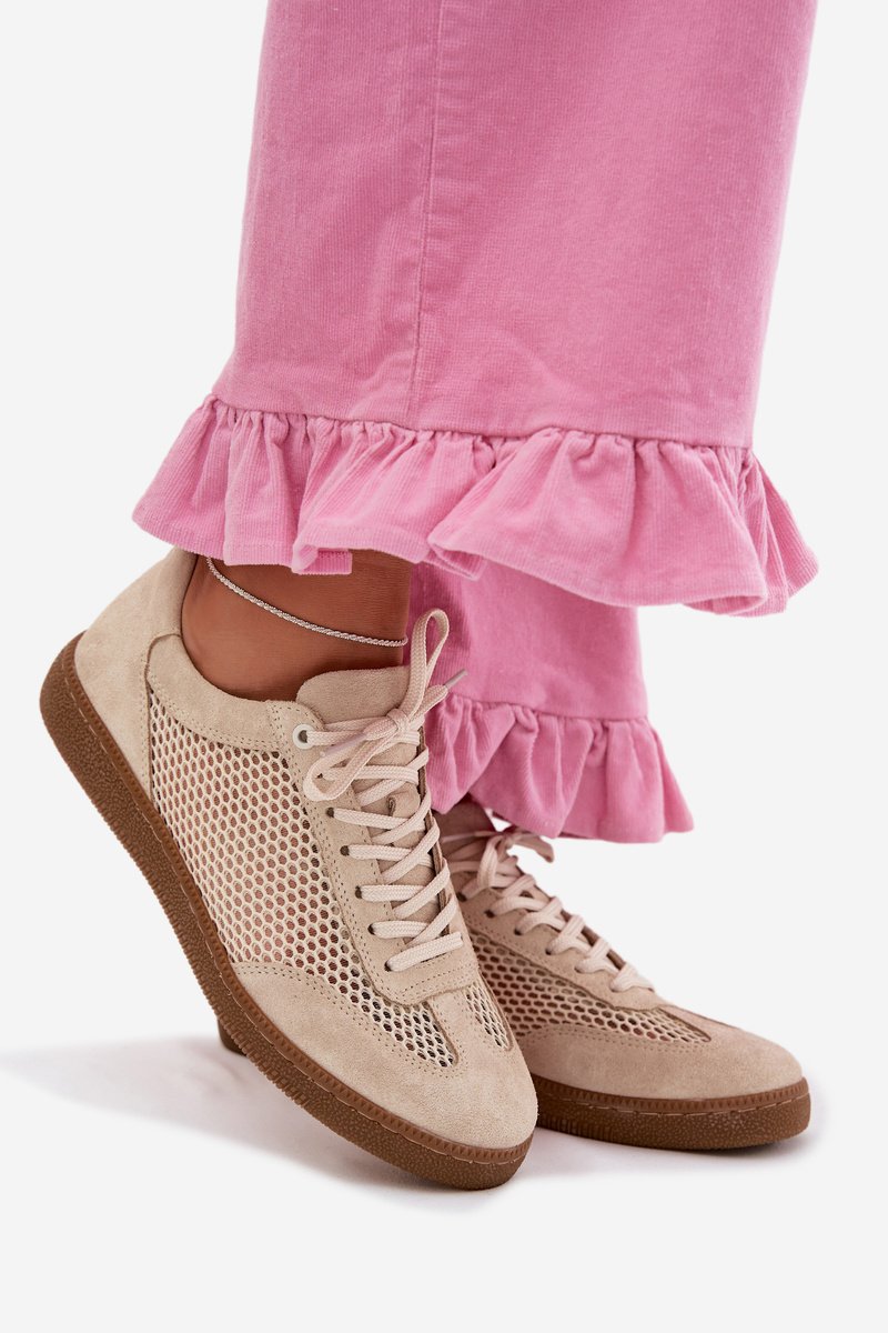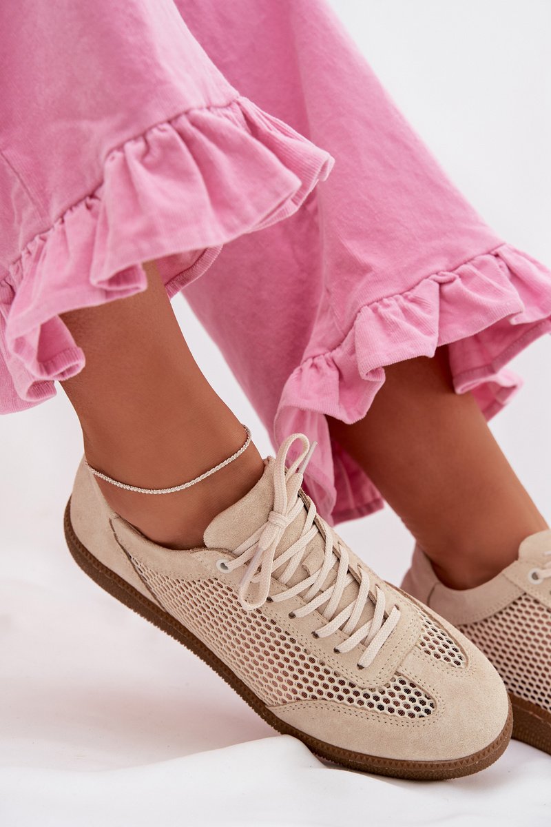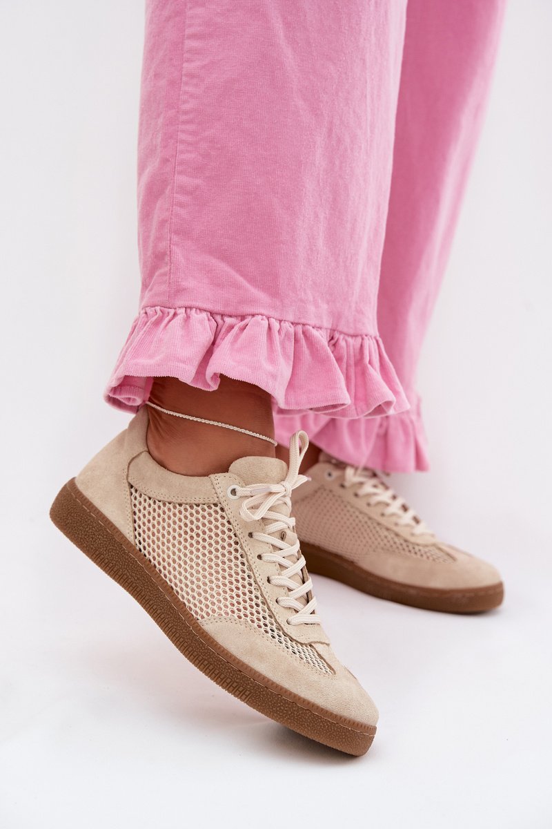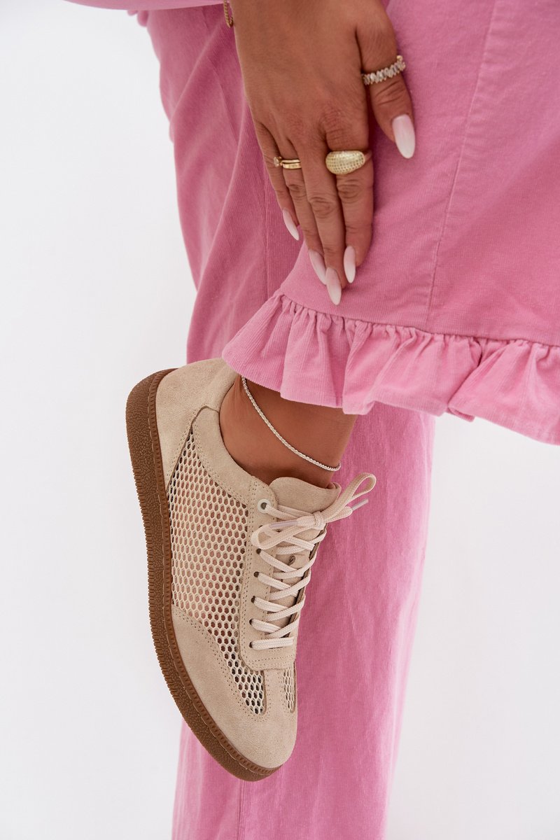 Sieviešu sneakers, kas izgatavotas no dabīga zamšādas un elpojošas tīkla, apvieno ērtību ar mūsdienīgu izskatu. Rūpīgi izvēlēti materiāli nodrošina izturību un pareizu gaisa cirkulāciju, kas nodrošina komfortu visu dienu. Zema profila dizains tiem piešķir daudzpusīgu raksturu un lieliski piemērojas ikdienas stiliem. Ideāla izvēle gan darbam, gan pastaigām vai satikšanās pilsētā. Stilīgas, ērtas un praktiskas – sneakers, kas viegli iekļaujas jūsu ikdienas garderobē. Izvēloties izmēru, lūdzu, skatiet izmēru tabulu.