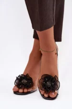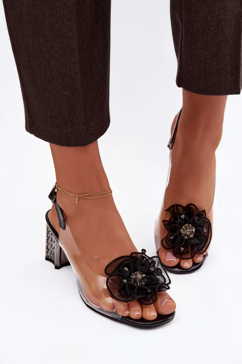 Šie eleganti un sievišķīgi caurspīdīgi sandales ir ideāla izvēle īpašiem gadījumiem. Stabilais blokveida papēdis nodrošina komfortu un pārliecību katrā solī, vienlaikus subtili akcentējot siluetu. Mīkstais caurspīdīgais materiāls piešķir vieglumu un modernitāti. Izcilu akcentu piešķir dekoratīvais ziedu elements no tīkla, kas piešķir kopējam izskatam romantiku un stilu. Sandales ir ar sprādzes aizdari un regulējamu siksnu, kas ļauj tās pareizi pielāgot kājai un nodrošina ērtu valkāšanu. Lieliska izvēle kleitām, vakara tērpiem un svinīgiem pasākumiem, kur svarīga ir elegance un detaļas. Izvēloties izmēru, lūdzu, izmantojiet izmēru tabulu.