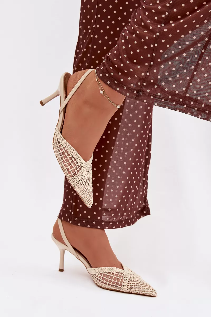 Šie sieviešu sandales, kas izgatavotas no izteiksmīga auduma, ir lieliska izvēle dažādām situācijām. Plānais papēdis skaisti pagarinā siluetu un piešķir stilam sievišķīgu vieglumu. Smaile formas purngals uzsver klasisko, eleganto siluetu un piešķir kopējam izskatam mūžīgu sajūtu. Šis modelis ir ideāls kā stilīgs akcents kleitām un biksēm. Izvēloties savu izmēru, lūdzu, izmantojiet izmēru tabulu.