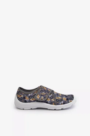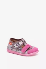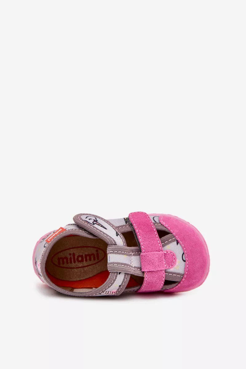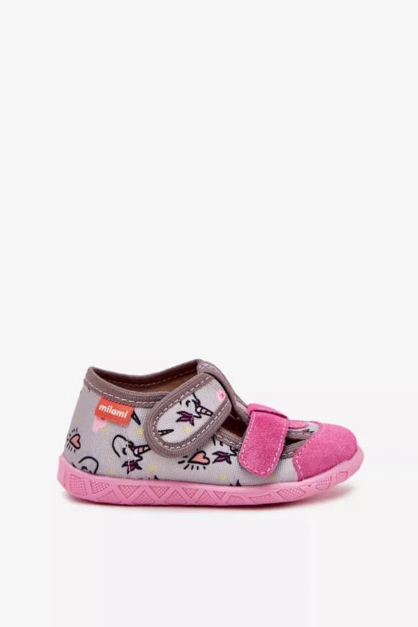 Bērnu čības Milami ar Velcro vienradžu pelēkā-rozā krāsā Reathiana