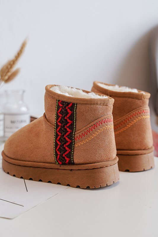 Bērnu sniega zābaki ar modernu rakstu uz augšējās daļas. Iekšpuse ir polsterēta ar biezu sintētisko kažokādu. Izgatavoti no videi draudzīga zamšāda. Bieza gumijas zole aizsargā pret aukstu zemi. Šis modelis ir pieejams arī sieviešu izmēros. Izveidojiet komplektu mammai un bērnam! Izvēloties izmēru, skatieties izmēru tabulu.