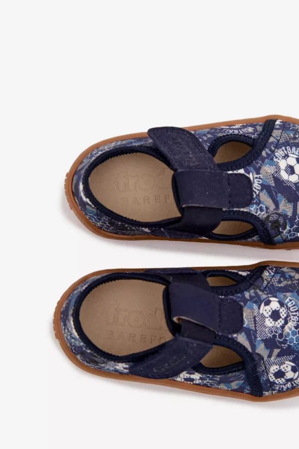 Vieglas bērnu čības no tekstilmateriāla, ideāli piemērotas ikdienas valkāšanai mājās un bērnudārzā. Barefoot stila modelis atbalsta bērna pēdas dabisko funkciju, nodrošinot kustību brīvību un komfortu ejot. Elastīgā zole pielāgojas pēdas kustībām, bet Velcro aizdare nodrošina ātru un drošu uzvilkšanu. Šis praktiskais risinājums ir izstrādāts, domājot par mazuļu komfortu. Izvēloties izmēru, lūdzu, izmantojiet izmēru tabulu.