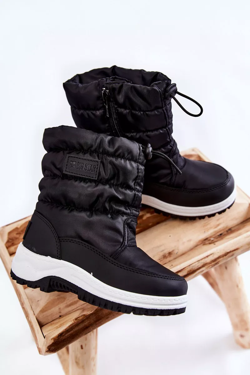 Bērnu sniega zābaki ir izgatavoti no tekstilmateriāla ar izšuvumiem. Tie nodrošina lielisku aizsardzību pret aukstumu un vēju. Sniega zābaki ir uzstādīti uz plakanas papēža un platformas ar protektoru. Tām ir arī rāvējslēdzējs apavu sānos un rāvējslēdzējs augšā. Izolētas ar aitas ādu. Big Star sniega apavi noteikti jāiekļauj jūsu bērna garderobē! Izvēloties izmēru, izmantojiet izmēru tabulu.