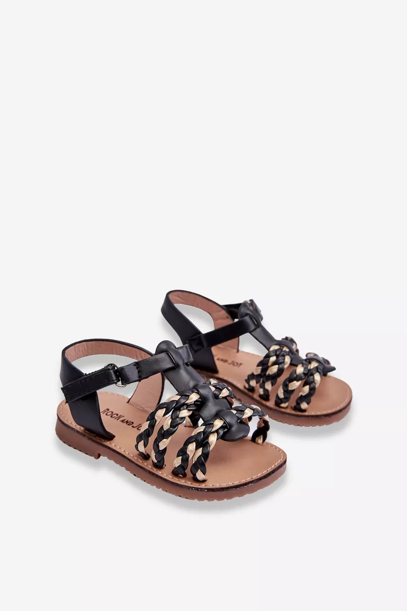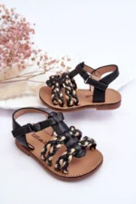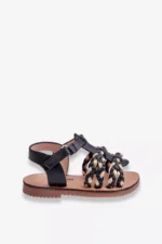 Bērnu Velcro sandales ar svītrām, melnas Sammy
