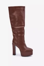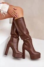 Ceļgalu augstie zābaki ar papēdi un platformu, izgatavoti no ekoloģiskās ādas, brūni Felilorn