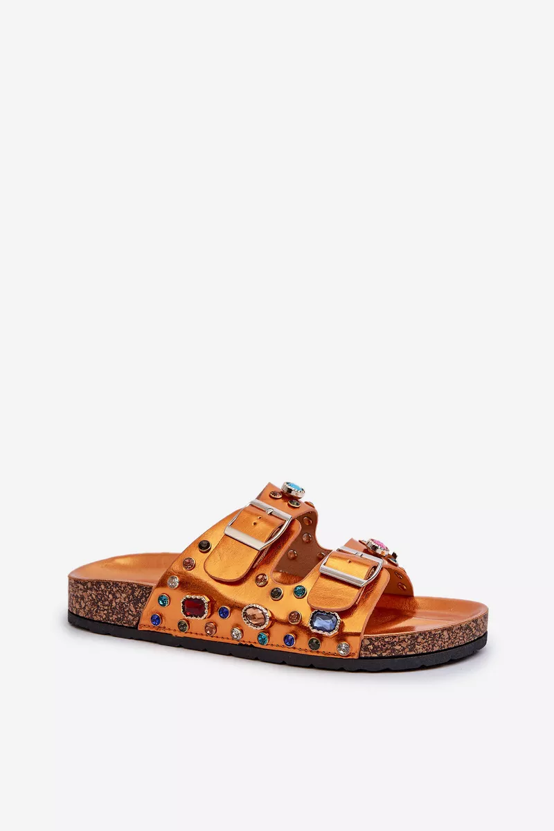 S.Barski zīmola čības, izgatavotas no videi draudzīgas ādas. Dekorētas ar mirdzošiem kristāliem, kas piešķir spīdumu jebkuram apģērbam. Korķa platforma nodrošina stabilitāti un modernu izskatu. Divas regulējamas siksnas ar sprādzēm priekšā nodrošina perfektu pielāgojumu. Šie apavi ne tikai piesaista uzmanību ar savu unikālo dizainu, bet arī nodrošina komfortu, tos valkājot. Izvēloties izmēru, lūdzu, izmantojiet izmēru tabulu.