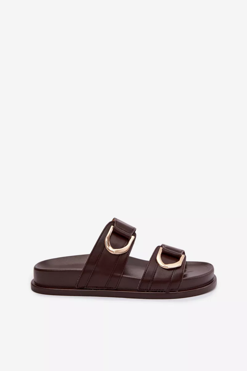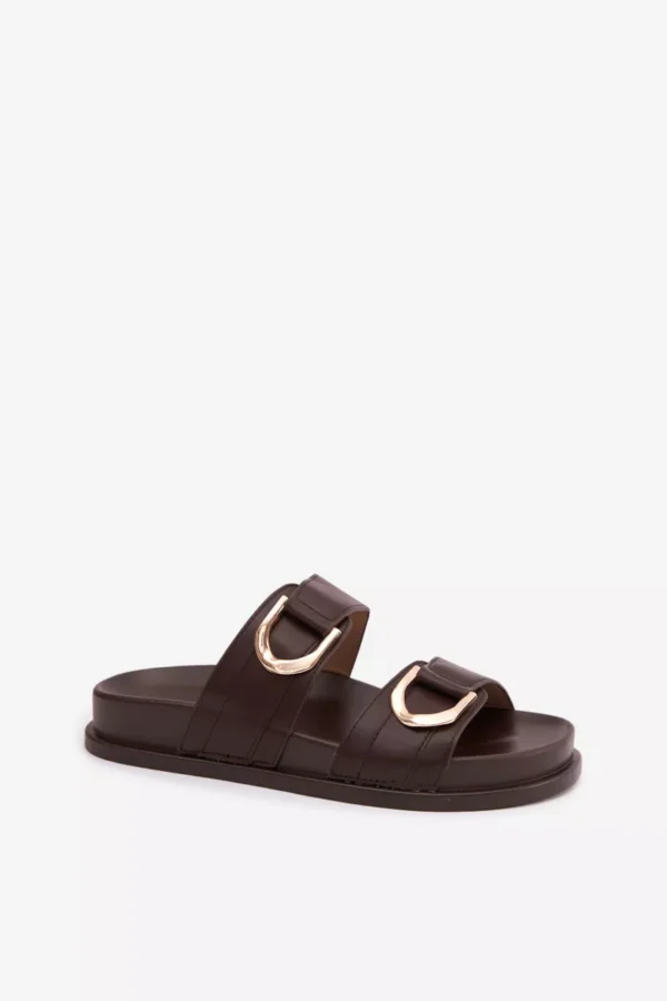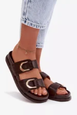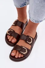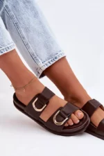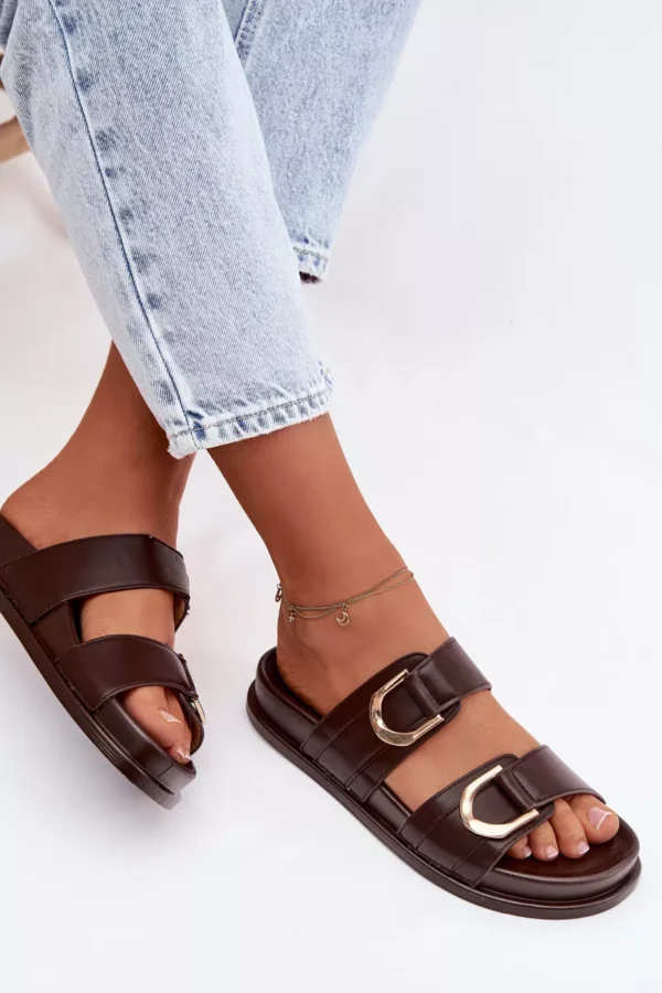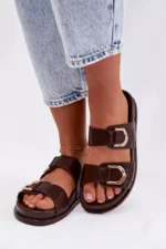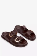 Stilīgas sieviešu čības no videi draudzīgas ādas – ērta izvēle siltajām dienām. Nelielais papēdis nodrošina komfortu un izsmalcina siluetu. Divas priekšējās siksnas, kas rotātas ar zelta elementiem, piešķir eleganci un modes akcentu. Šie čības ir ideāli piemēroti ikdienas vasaras apģērbiem. Izvēloties izmēru, lūdzu, izmantojiet izmēru tabulu.
