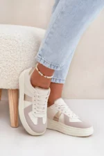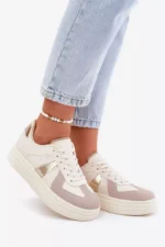 Šie sieviešu sporta apavi, kas izgatavoti no videi draudzīgas ādas, apvieno modernu stilu ar komfortu. Ar mīkstu, polsterētu zoli, kas pārklāta ar audumu, tie nodrošina komfortu visas dienas garumā. Noapaļotie purngali piešķir vieglumu, bet platforma uzsver to modernu raksturu. Ideāli piemēroti ikdienas stilam, tie ir lieliska izvēle jebkurai situācijai. Izvēloties izmēru, lūdzu, izmantojiet izmēru tabulu.