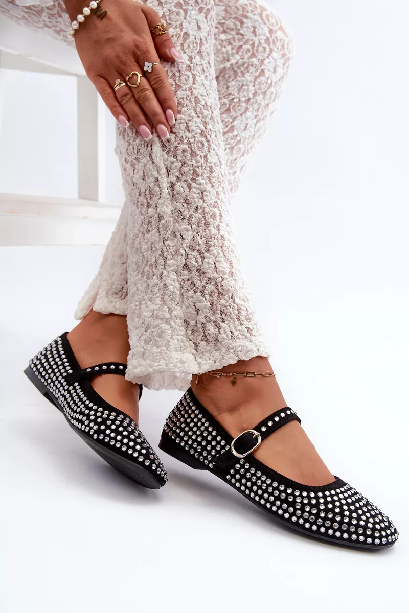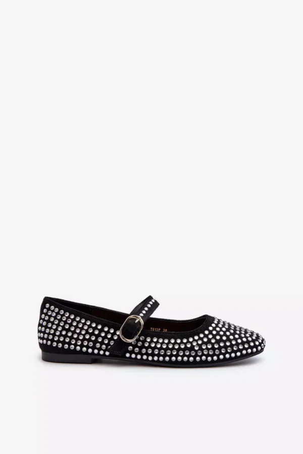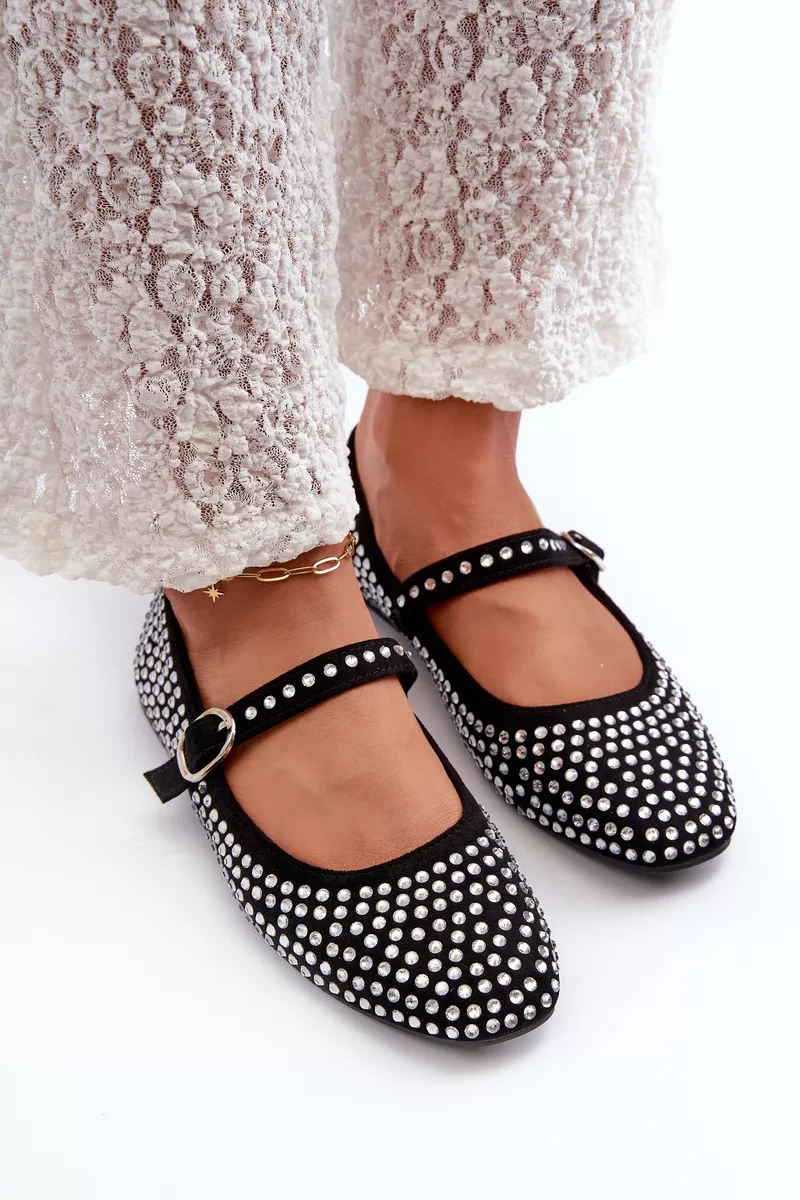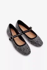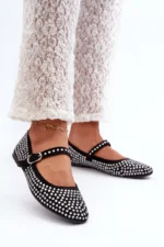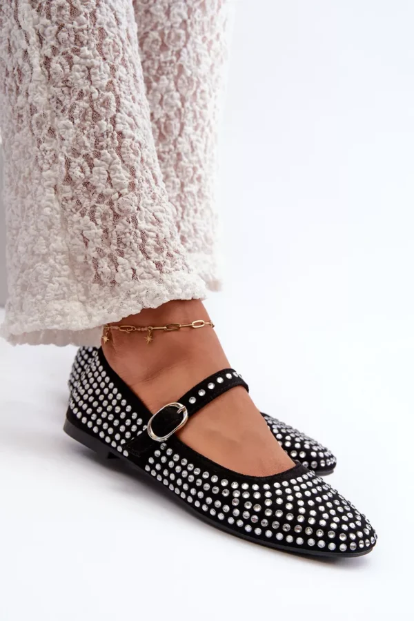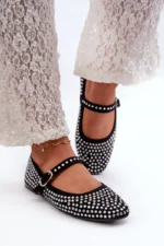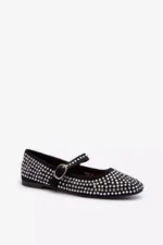Balerīnu kurpes, izgatavotas no videi draudzīga zamšāda un rotātas ar daudzām akmentiņām. Piesprādzētas ar regulējamu siksnu stabilitātes un komforta nodrošināšanai. Šīs balerīnu kurpes ir lieliska izvēle jebkuram gadījumam. Tās noteikti piešķirs mirdzumu jebkuram apģērbam. Lūdzu, izvēloties savu izmēru, skatieties izmēru tabulu.