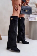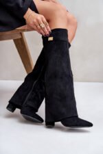 Eleganti sieviešu apavi no videi draudzīga zamšāda. Bloka papēdis. Smaile purngals. Šī modeļa izšķirošā iezīme ir apgriezta augšstilba daļa ar noņemamu siksnu augšstilba augšdaļā, kas sedz papēdi. Rāvējslēdzējs. Ideāli piemēroti valkāšanai ar kleitām vai svārkiem! Izvēloties izmēru, lūdzu, izmantojiet izmēru tabulu.