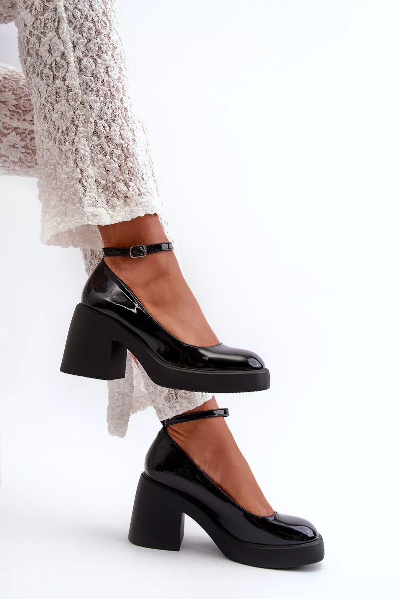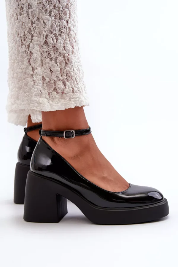 Unikālas kurpes, izgatavotas no videi draudzīgas ādas. Piesprādzētas ar regulējamu siksnu ar sprādzi, kas nodrošina perfektu piegulumu. Uzliktas uz masīva, augstāka bloka papēža. Pastiprināta aizmugure un kvadrātveida purngals. Zābaki ir arī ar nelielu platformu. Lūdzu, izvēloties savu izmēru, skatieties izmēru tabulu.
