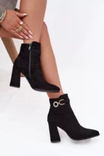 Sieviešu zābaki ir izgatavoti uz stabila papēža kolonnas formā. Šis modelis ir izgatavots no ekoloģiskās ādas. Iekšpuse ir izolēta ar zābaku oderi. Aizdarās ar rāvējslēdzēju augšā. Pirksts ir fiksēts. Smaili pirksti padara kājas vizuāli slaidākas. Plāna siksna ar rotājumu augšā. Izvēloties izmēru, lūdzu, izmantojiet izmēru tabulu.