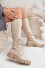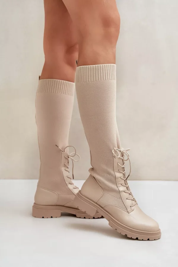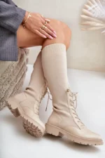 Sieviešu potītes zābaki, kas izgatavoti no videi draudzīgas ādas un tekstilmateriālu kombinācijas. Šis modelis izceļas ar noapaļotiem purngaliem, kas garantē komfortu valkāšanā. Zābaku iekšpuse ir izolēta ar zābaku oderi, kas sniedzas līdz pēdu zonai. Elastīgā augšdaļa ar auklām piešķir apaviem modernu, stilīgu izskatu. Lūdzu, izvēloties savu izmēru, skatieties izmēru tabulu.