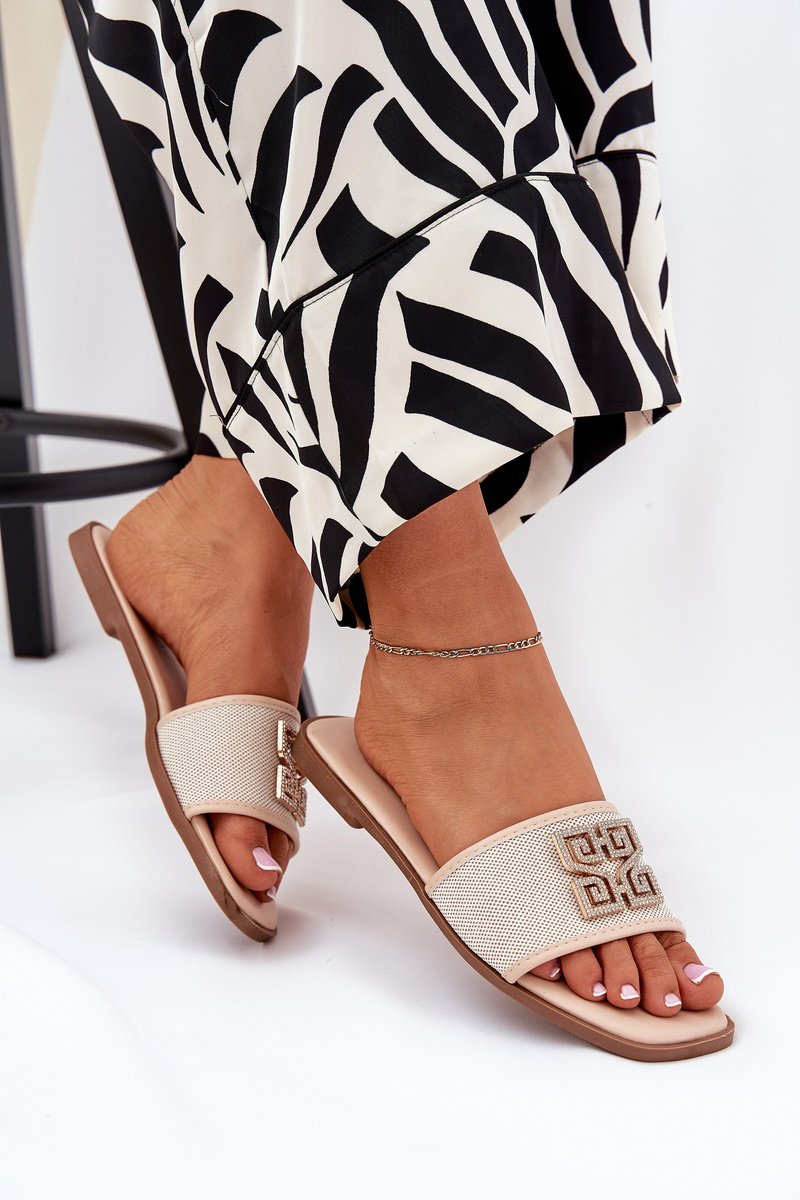 Sieviešu plakanās sandales nodrošina komfortu visas dienas garumā. Spīdīgi cirkona rotājumi piešķir tām smalku mirdzumu. Šis modelis noteikti izcels jūsu vasaras garderobes unikalitāti. Izvēloties izmēru, skatieties izmēru tabulu.