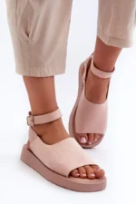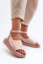 Unikālas sieviešu platformas sandales. Šīs kurpes ir izgatavotas no videi draudzīga zamšāda, kas ir patīkams uz tausti. Tām ir mīksta, videi draudzīga ādas zole. Sandales tiek piestiprinātas ap potīti ar regulējamu siksnu un sprādzi. Šis neparastais modelis noteikti papildinās jūsu vasaras garderobi! Izvēloties izmēru, skatieties izmēru tabulu.