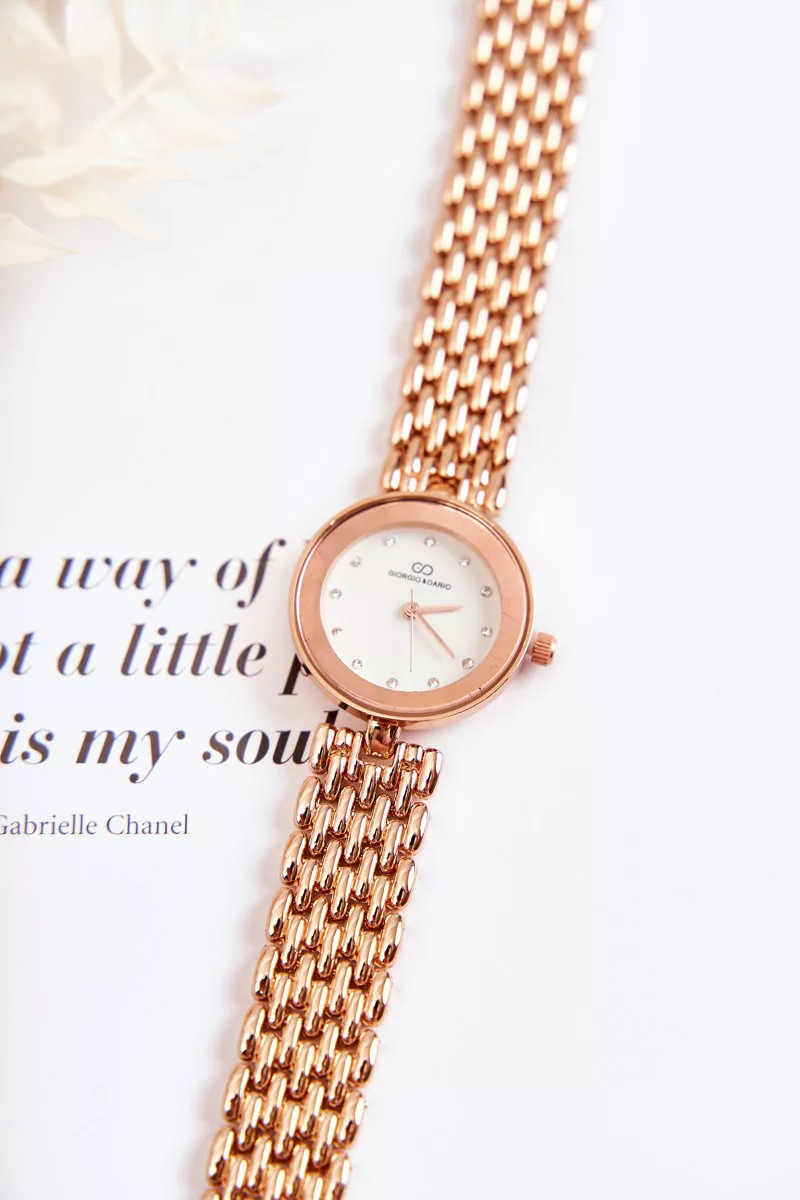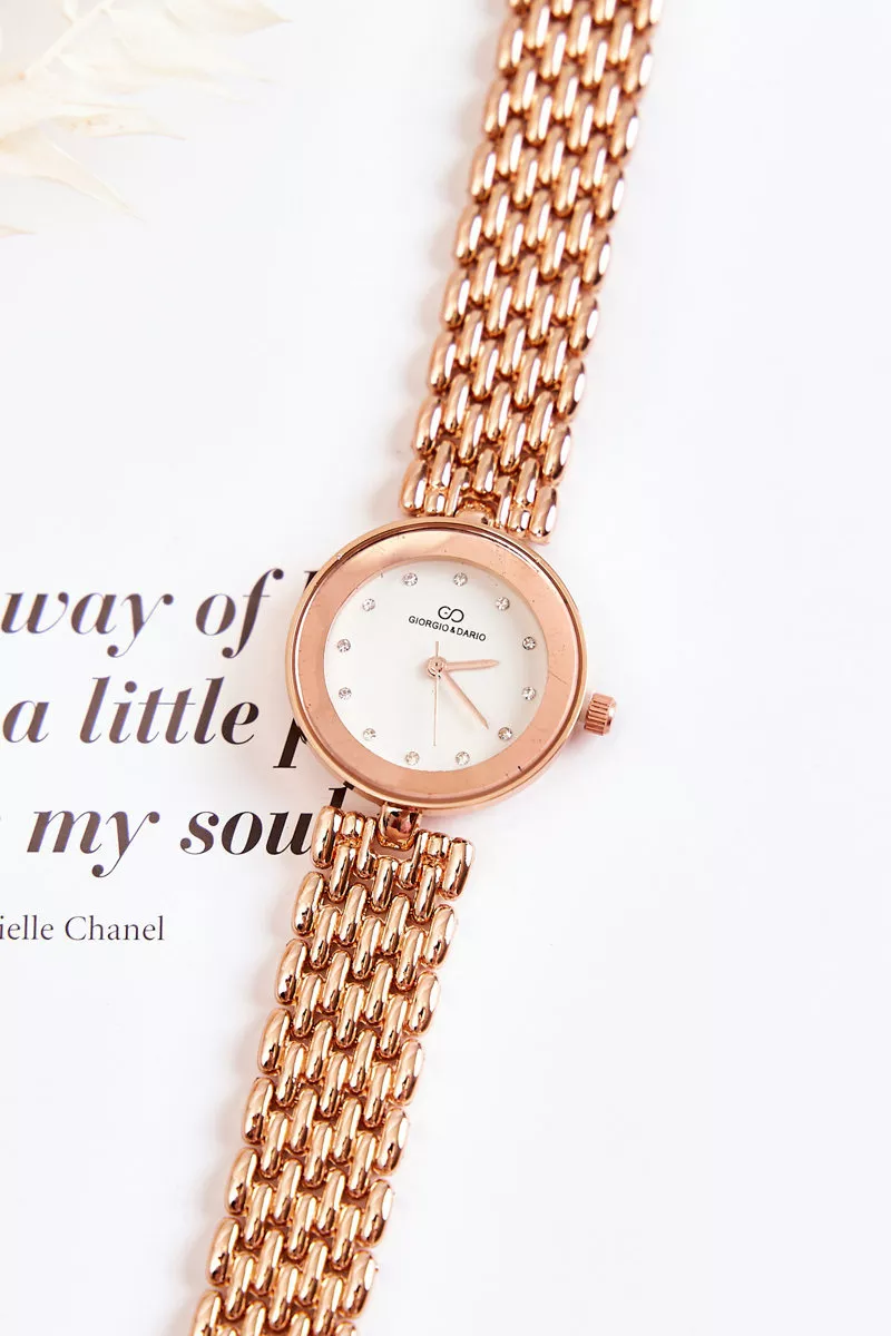 Giorgio & Dario sieviešu pulkstenis ar kubiskā cirkona akmeņiem uz ciparnīca rozā zelta