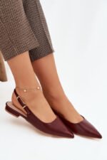 Šīs elegantas sieviešu balerīnu kurpes, kas izgatavotas no videi draudzīgas ādas, ir stilīga izvēle jebkurai dzīves situācijai. Smaile formas purngals skaisti izceļ pēdas līniju. Regulējama siksna ar zelta sprādzi ļauj kurpes ideāli pielāgot pēdai un vienlaikus rada iespaidīgu detaļu. Zems papēdis nodrošina komfortu visas dienas garumā, padarot šīs balerīnu kurpes ideālas ikdienas valkāšanai, darbam vai sanāksmēm. Izvēloties savu izmēru, lūdzu, skatieties izmēru tabulu.
