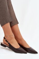 Šīs elegantas sieviešu balerīnu kurpes, kas izgatavotas no videi draudzīgas ādas, ir stilīga izvēle jebkurai dzīves situācijai. Smaile formas purngals skaisti izceļ pēdas līniju. Regulējama siksna ar zelta sprādzi ļauj kurpes ideāli pielāgot pēdai un vienlaikus rada iespaidīgu detaļu. Zems papēdis nodrošina komfortu visas dienas garumā, padarot šīs balerīnu kurpes ideālas ikdienas valkāšanai, darbam vai sanāksmēm. Izvēloties savu izmēru, lūdzu, skatieties izmēru tabulu.