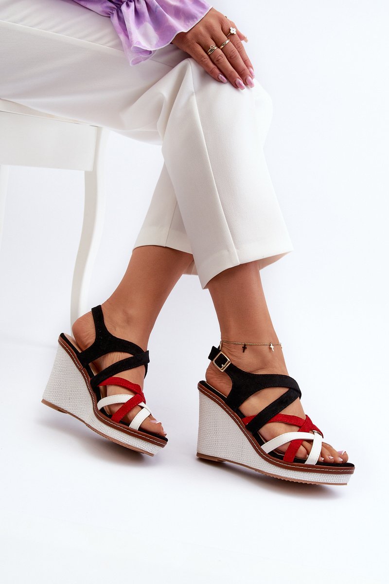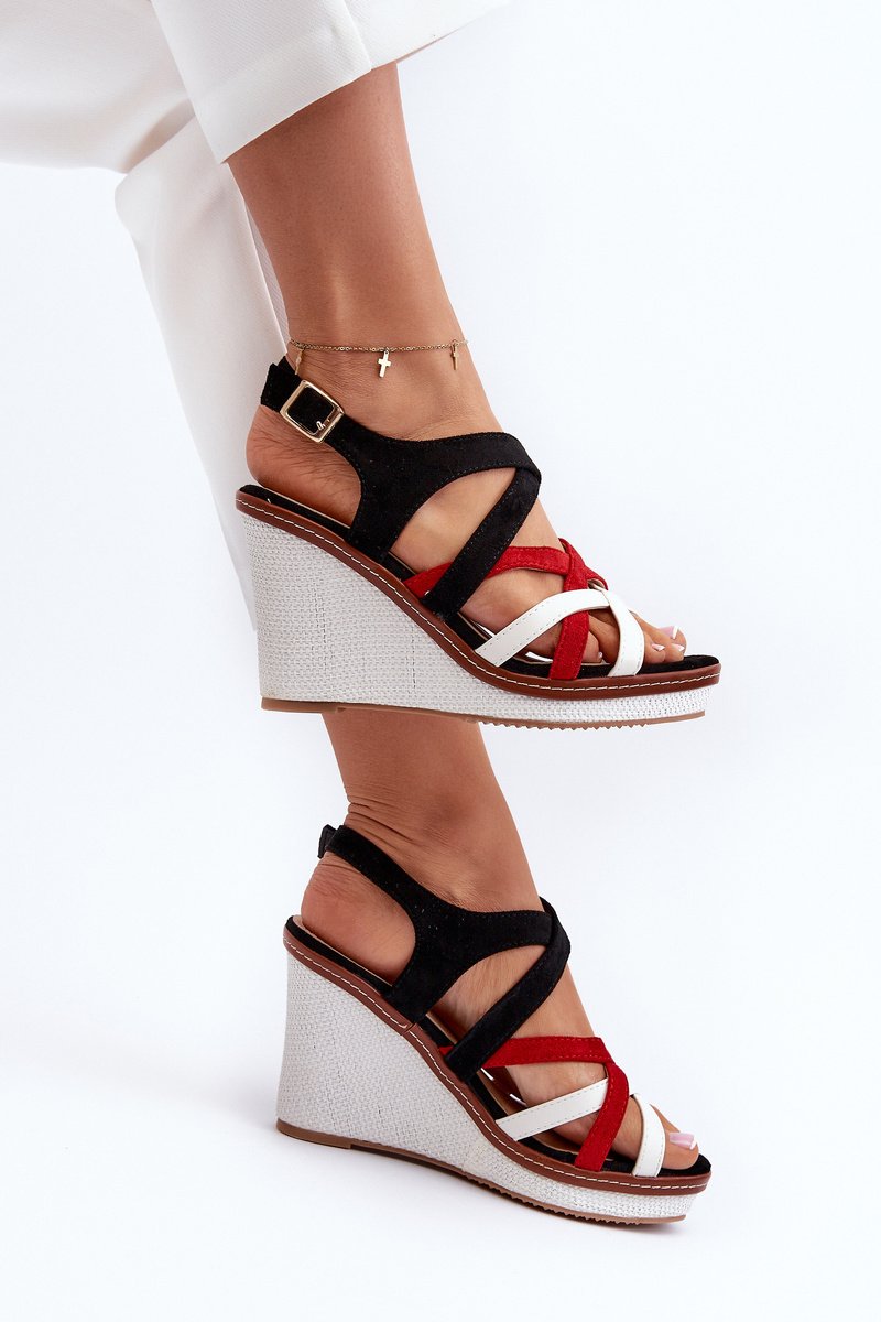 Unikālas sieviešu sandales ar platformu un papēžiem. Augšējā daļa ir izgatavota no ekoloģiskās ādas. Siksnas savstarpēji savijas, radot unikālu efektu. Apaviem ir mīksta ekoloģiskās ādas zole. Sandales tiek piestiprinātas ap potīti ar regulējamu siksnu. Zole ir izgatavota no neslīdoša plastmasas, bet papēdis un platforma ir dekorēti ar pītiem elementiem. Lūdzu, izvēloties izmēru, skatieties izmēru tabulu.