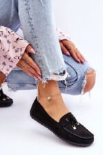 Klasiskie sieviešu apavi ir izgatavoti no videi draudzīga zamšāda. Šim modelim ir dekoratīvas siksnas ar sprādzi un gredzenu priekšā. Mokasīni ir novietoti uz delikātu platformu. Mīksta zole nodrošina komfortu, valkājot apavus. Šim modelim ir nedaudz noapaļots purngals. Ideāli piemērots daudziem stiliem pavasara-rudens sezonā! Izvēloties izmēru, skatieties izmēru tabulu.