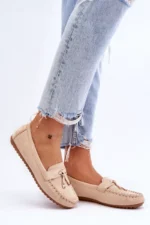 Klasiskie sieviešu apavi ir izgatavoti no videi draudzīga zamšāda. Šim modelim ir dekoratīvas siksnas ar sprādzi un gredzenu priekšā. Mokasīni ir novietoti uz delikātu platformu. Mīksta zole nodrošina komfortu, valkājot apavus. Šim modelim ir nedaudz noapaļots purngals. Ideāli piemērots daudziem stiliem pavasara-rudens sezonā! Izvēloties izmēru, skatieties izmēru tabulu.