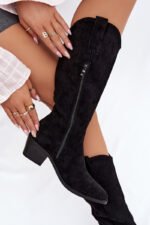 Šie sieviešu kovboju zābaki, kas izgatavoti no videi draudzīga zamšāda, ir stilīgs modelis, kas iedvesmots no rietumu akcentiem. Tie ir ar raksturīgu, saīsinātu papēdi, kas uzsver siluetu un piešķir visam izskatam izteiksmīgu raksturu. Smaili purngali piešķir tiem eleganci, bet ar mīkstu materiālu pārklātais putu polsterējums nodrošina komfortu un siltumu aukstās dienās. Modelis ir bez auklas, ar papildu rāvējslēdzēju, kas atvieglo valkāšanu un pielāgošanu. Ideāli piemēroti rudens-ziemas stilam, gan ikdienas, gan modes apģērbam. Izvēloties savu izmēru, lūdzu, izmantojiet zemāk esošo izmēru tabulu. Izvēloties savu izmēru, lūdzu, izmantojiet izmēru tabulu.