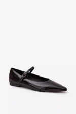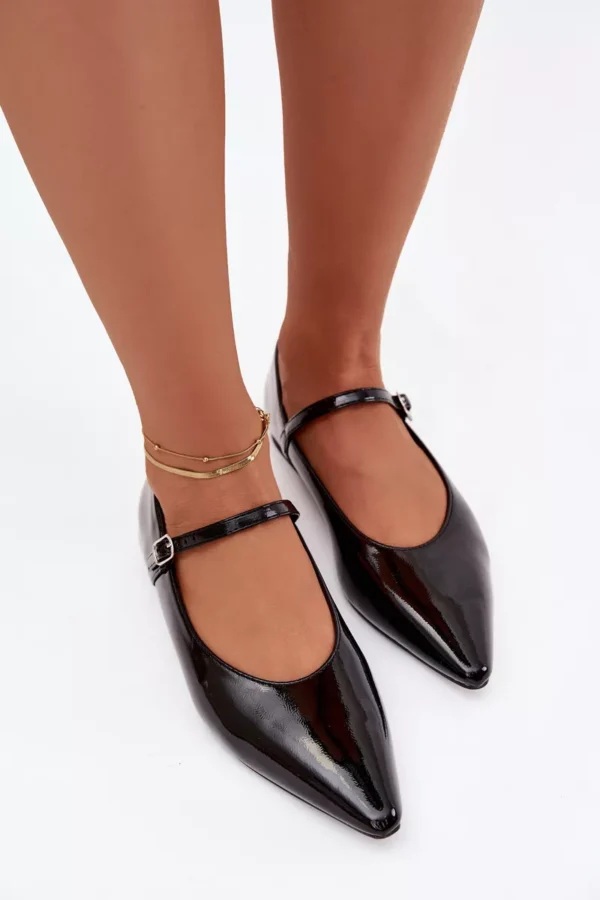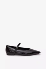Šīs sieviešu balerīnu kurpes, kas izgatavotas no spīdīgas ekoloģiskās ādas, ir eleganta izvēle sievietēm, kuras novērtē stilu un komfortu. Smaile formas purngals vizuāli pagarina pēdu, bet plakana papēža nodrošina komfortu visas dienas garumā. Pēdas augšdaļā ir regulējama siksna, kas palielina stabilitāti un vienlaikus ir moderns, stilīgs akcents. Šie ir ideāli apavi gan elegantiem, gan ikdienas tērpiem. Izvēloties izmēru,