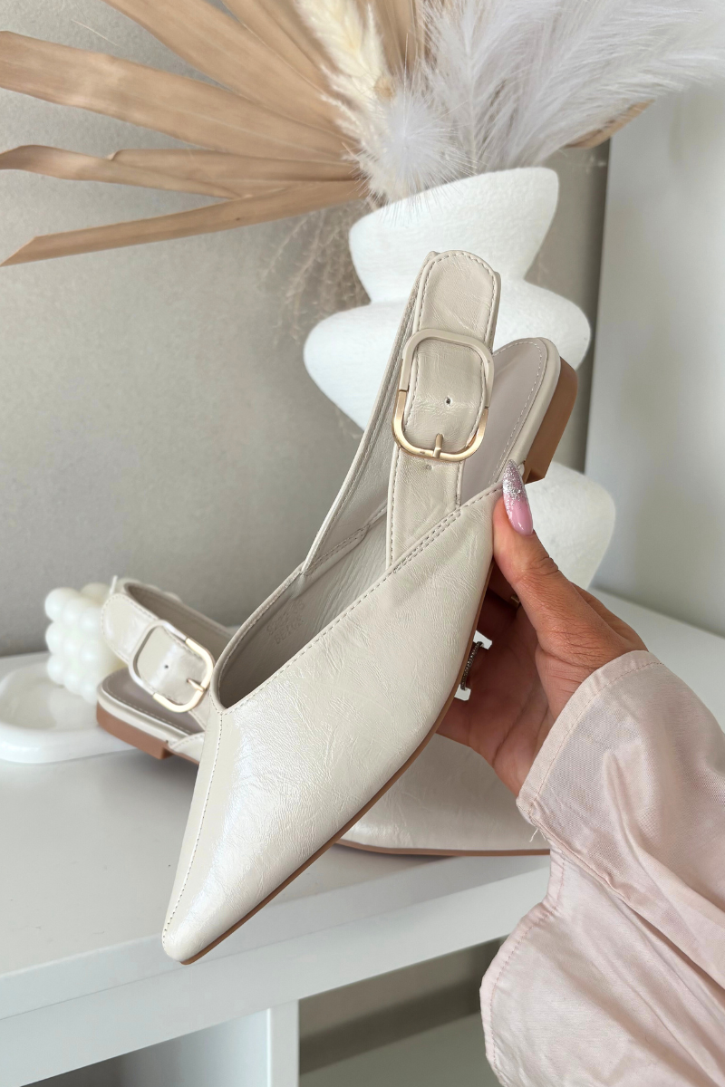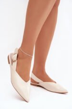 Sieviešu balerīnu kurpes, izgatavotas no videi draudzīgas ādas. Plānie, smaili purngali piešķir vieglumu un uzsver sievišķīgo stilu, bet plakana papēža nodrošina komfortu ejot. Priekšējā vīle piešķir izsmalcinātu akcentu, bet aizmugurējā siksna ar dekoratīvu sprādzi kalpo gan kā regulēšanas elements, gan stilīgs akcents. Šis modelis lieliski papildina gan ikdienas, gan elegantu izskatu. Izvēloties izmēru, lūdzu, skatieties izmēru tabulu. Izvēloties izmēru, lūdzu, skatieties izmēru tabulu.