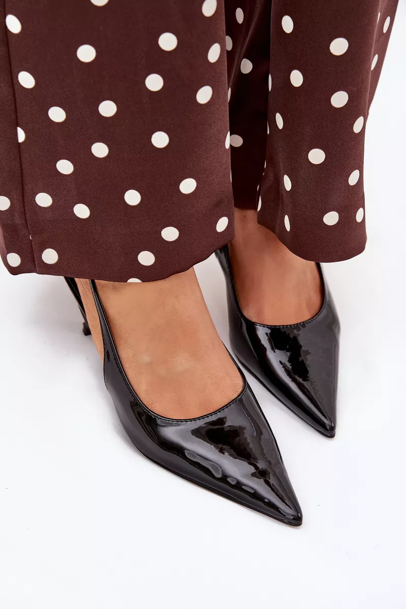 Lakādas sieviešu augstpapēži ar smailiem purngaliem un atvērtām papēžām ir eleganta izvēle, kas apvieno klasisko stilu ar modernu pieskārienu. Smaili purngali pagarina kājas, piešķirot siluetam slaidu izskatu. Atklātie papēži piešķir vieglumu, padarot šos augstpapēžu kurpes par ideālu izvēli ballītēm un īpašiem pasākumiem. Izvēloties savu izmēru, lūdzu, izmantojiet izmēru tabulu.