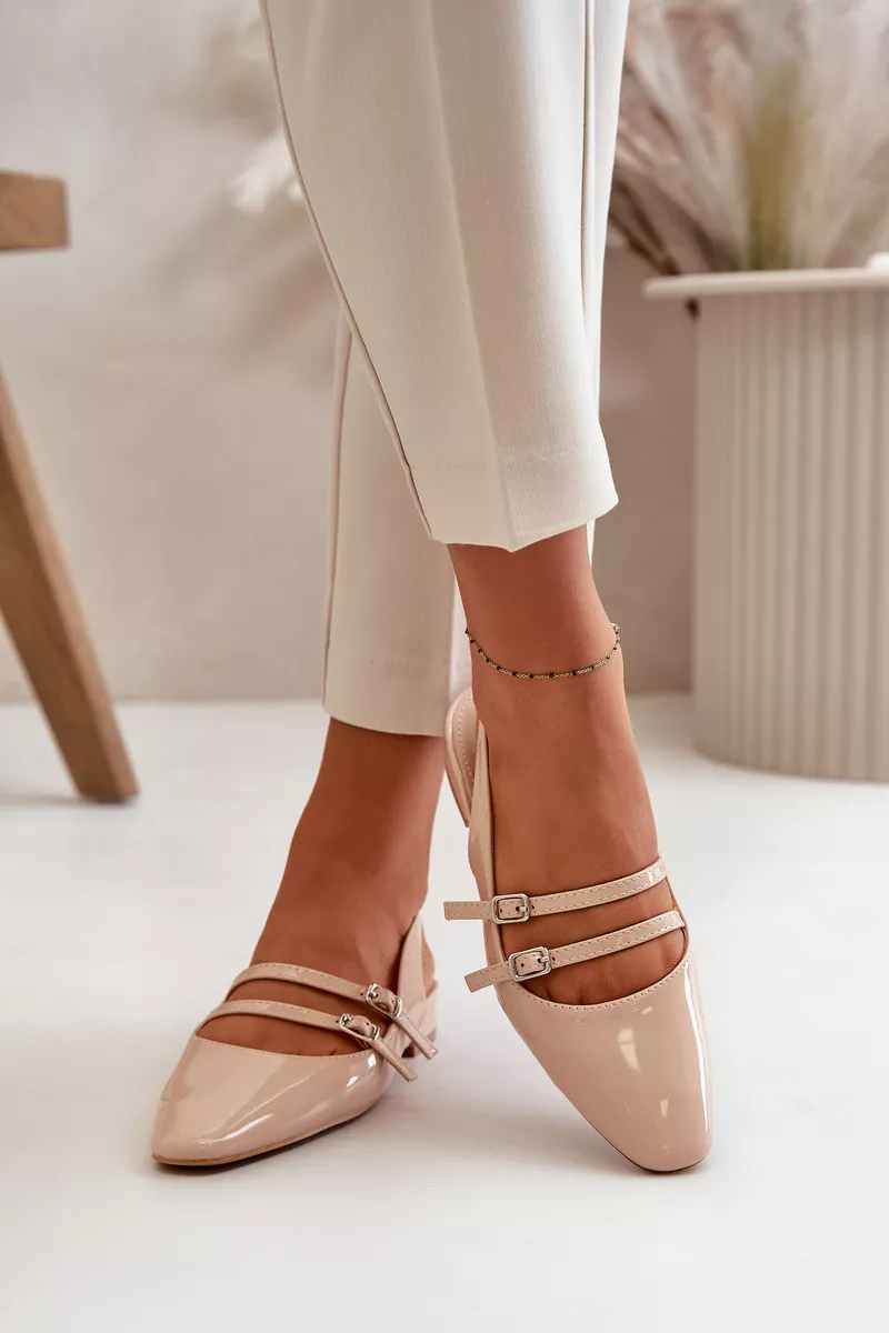 Lakotas baleta kurpes ar siksnām uz zema papēža, smilškrāsas Bialettia