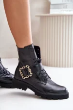 Sieviešu zābaki, izgatavoti no augstas kvalitātes dabīgās ādas. Ar plakanu papēdi, tie ir ārkārtīgi ērti un stabili. Aizdarāmi ar rāvējslēdzēju papēža sānos un auklām. Šī modeļa galvenā priekšrocība ir dekoratīvā sprādze, kas piešķir tam unikālu šarmu. Noapaļoti purngali. Jums noteikti vajadzētu iegādāties šādu pāri! Izvēloties izmēru, lūdzu, izmantojiet izmēru tabulu.