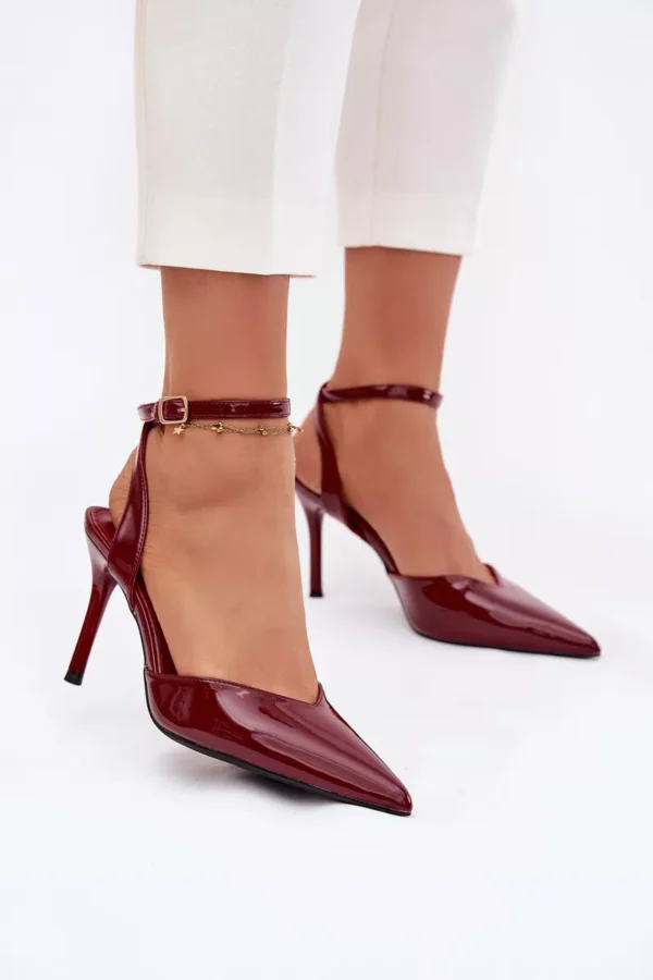 Sieviešu augstpapēži, izgatavoti no patentētas ekoloģiskās ādas. Spīdīgā apdare izskatās skaisti uz kājām, bet smaili purngali piešķir kopējam izskatam eleganci. Modelim ir regulējama siksna ar sprādzi, kas ļauj viegli pielāgot kurpes kājai. Sievišķīgi, klasiski un mūžīgi — ideāla izvēle vakara tērpam. Izvēloties izmēru,