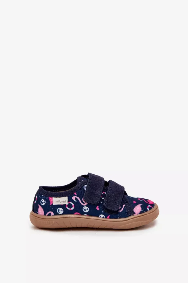 Milami bērnu čības ir basu tipa apavi, kas izstrādāti, lai atbalstītu dabisku kustību un skriešanas attīstību. Tās ir izgatavotas no tekstilmateriāla ar dubultu līmlenti, tās ir viegli uzvilkt un perfekti pielāgojas kājai. Plānajai zolei ir labāks kontakts ar virsmu, kas palīdz uzturēt līdzsvaru, bet platā purngala daļa ļauj pirkstiem brīvi attīstīties, novēršot deformācijas. Papēža augstuma trūkums ļauj ķermenim palikt dabiskā, veselīgā pozīcijā. Šie apavi atbalsta sensomotorisko prasmju attīstību, ļaujot maziem bērniem pilnībā brīvi kustēties. Izvēloties izmēru, lūdzu, izmantojiet izmēru tabulu. Izvēloties izmēru, lūdzu, izmantojiet izmēru tabulu.