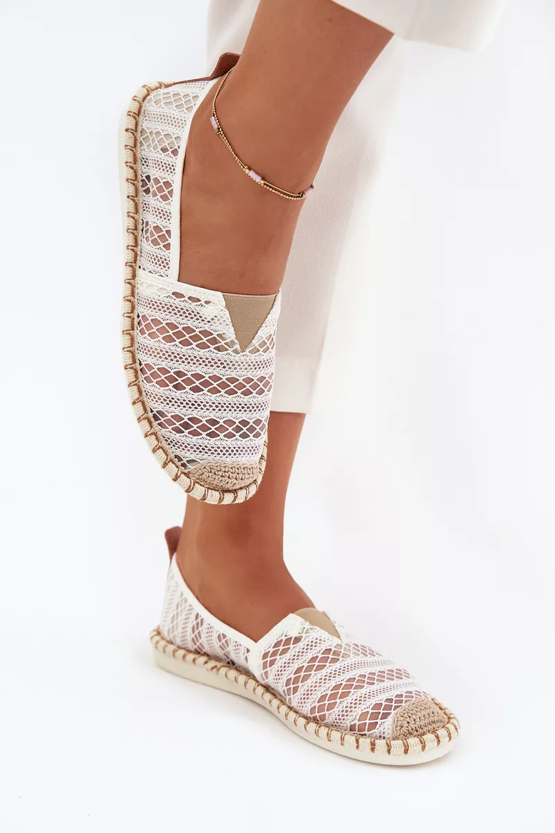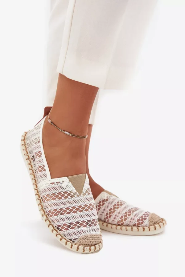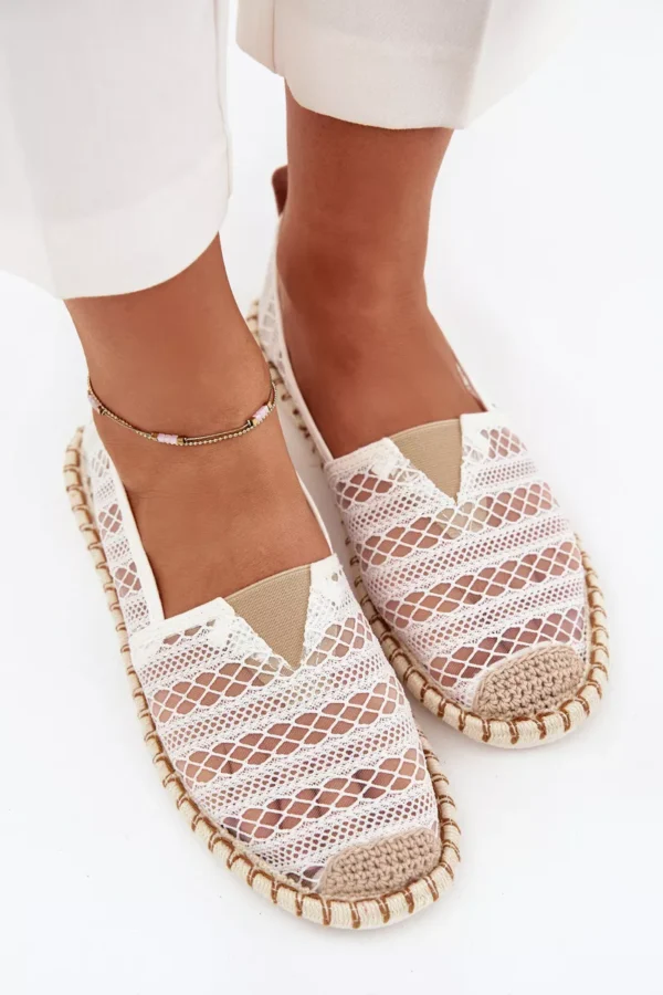Sieviešu espadrilas no tīkla ar mežģīnēm. Noapaļotie purngali piešķir tām smalku, sievišķīgu raksturu, bet mīkstā zole nodrošina komfortu visas dienas garumā. Ideāli piemērotas vasaras dienām, tās labi sader ar kleitām, svārkiem vai biksēm, piešķirot jebkuram apģērbam smalku, vasarīgu pieskārienu. Izvēloties savu izmēru, lūdzu, izmantojiet izmēru tabulu.