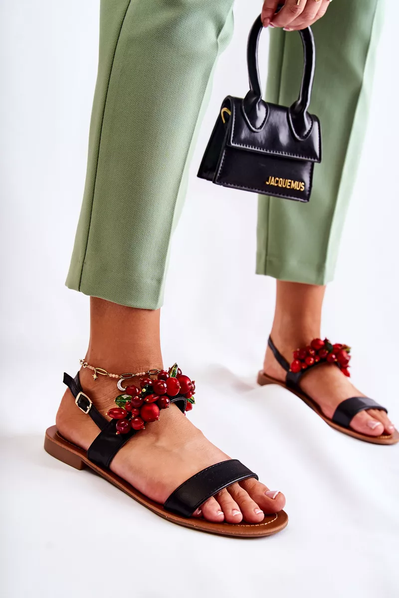 Šie sieviešu sandales ir izgatavotas no videi draudzīgas ādas. Tās ir rotātas ar skaistām dažāda izmēra pērlītēm. Modelis tiek aizdarīts ar regulējamu siksnu ar sprādzi. Iekšzole ir izgatavota no plastmasas. Apavi ir uzstādīti uz plakanas papēža ar neslīdošu zoli. Modelis, kas ir ideāli piemērots karstām dienām. Tās noteikti ir jāiegādājas! Izvēloties izmēru, izmantojiet izmēru tabulu.