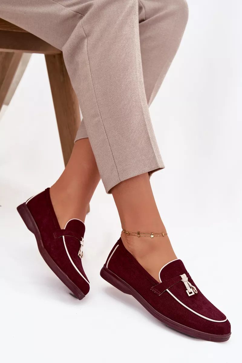 Stilīgi sieviešu mokasīni, izgatavoti no videi draudzīga zamšāda. Plakana papēža dēļ tie ir ērti valkāt visu dienu, bet smalkie dekoratīvie elementi priekšpusē piešķir tiem modernu izskatu. Apļveida purngals uzsver klasisko griezumu, padarot šos apavus ideālus gan ikdienas, gan elegantiem tērpiem. Lūdzu, izvēloties savu izmēru, skatieties izmēru tabulu. Lūdzu, izvēloties savu izmēru, skatieties izmēru tabulu.