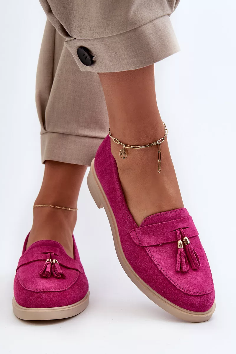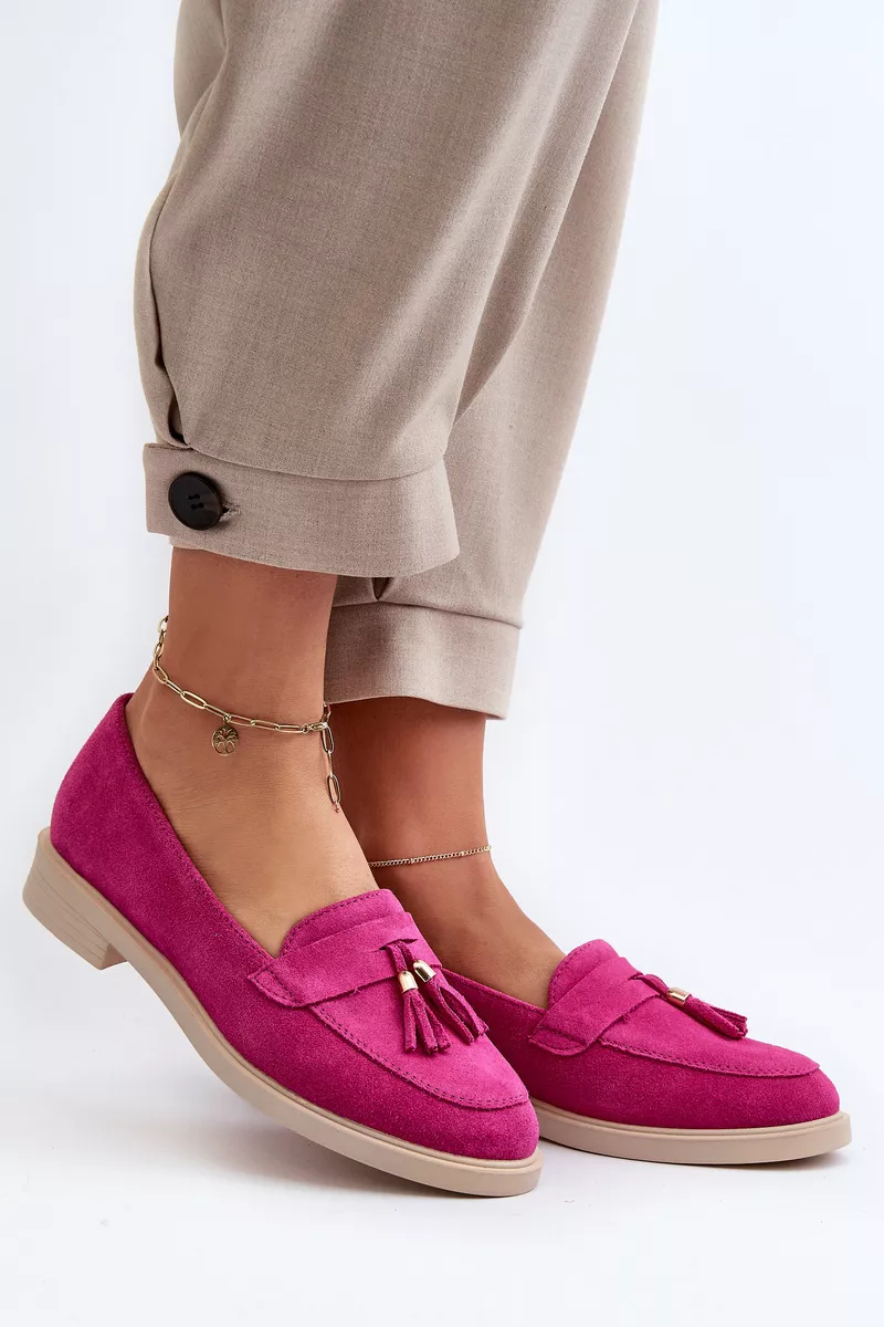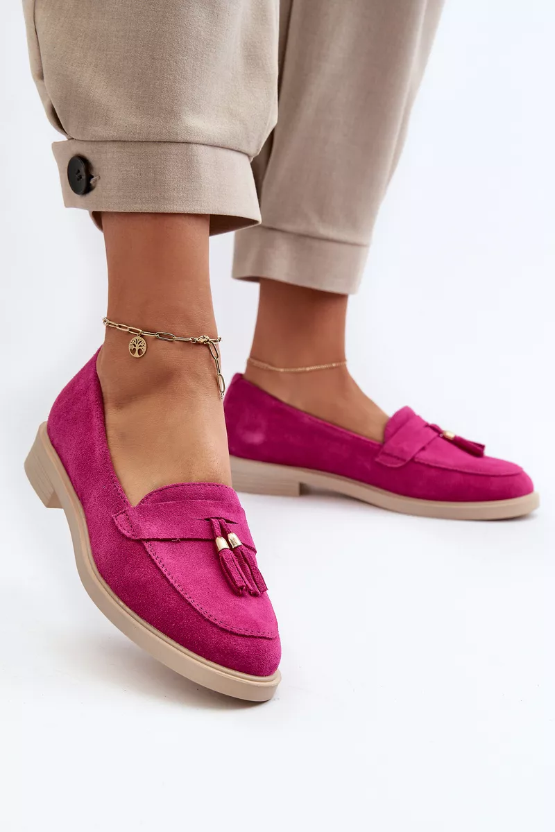Sieviešu mokasīni no dabiskas zamšādas ar plakanu papēdi, kas nodrošina stabilitāti ejot. Priekšpuse ir dekorēta ar smalkām kniedēm, kas piešķir izsmalcinātību un stilu. Konturēta zole nodrošina papildu komfortu ilgstošas valkāšanas laikā. Šie mokasīni ir lieliska izvēle tiem, kas novērtē gan modernu izskatu, gan komfortu. Izvēloties savu izmēru, lūdzu, izmantojiet izmēru tabulu.